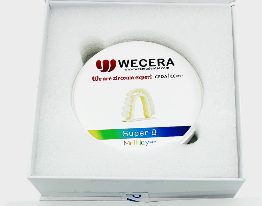 به طور کلی دیسک زرکونیا چند لایه Wecera Super 8 یک انتخاب عالی برای متخصصین دندانپزشکی است که به دنبالو بلوک زیرکونیا دندانپزشکی با عملکرد بالا که به طور یکپارچه با سیستم های CAD / CAM مدرن ادغام می شود تا نتایج فوق العاده بیمار را ارائه دهد.